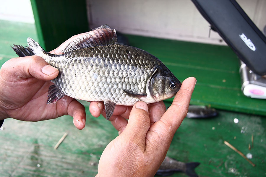 마수걸이 7치급 토종붕어의 얼굴입니다.