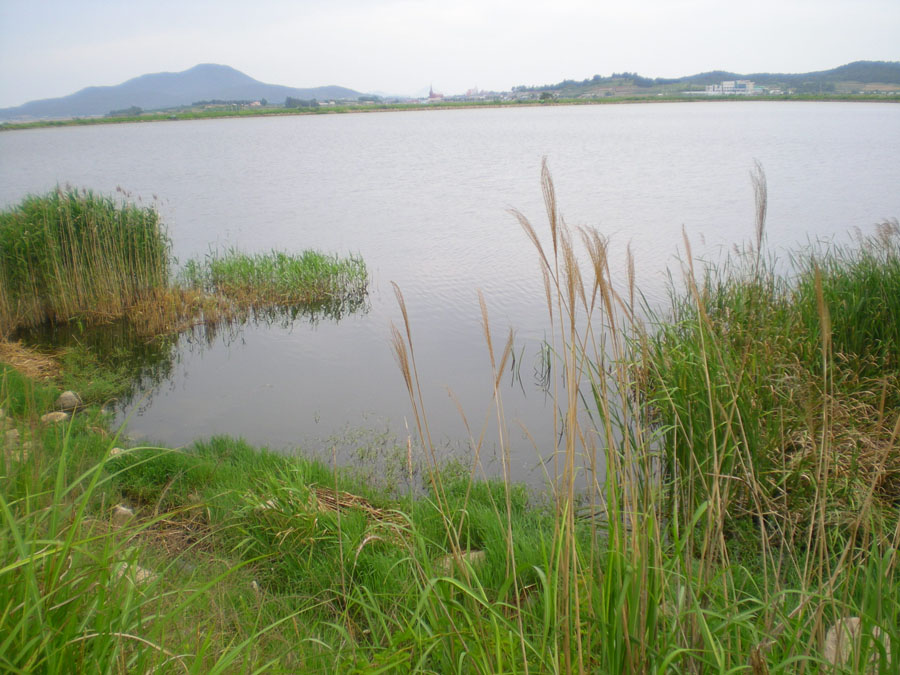 상류쪽에는 군데군데 부들밭이...