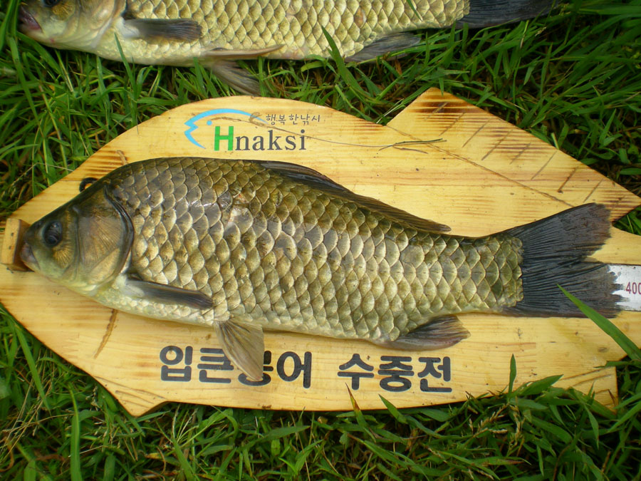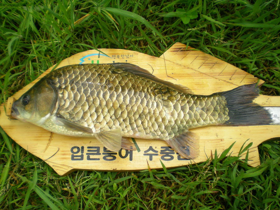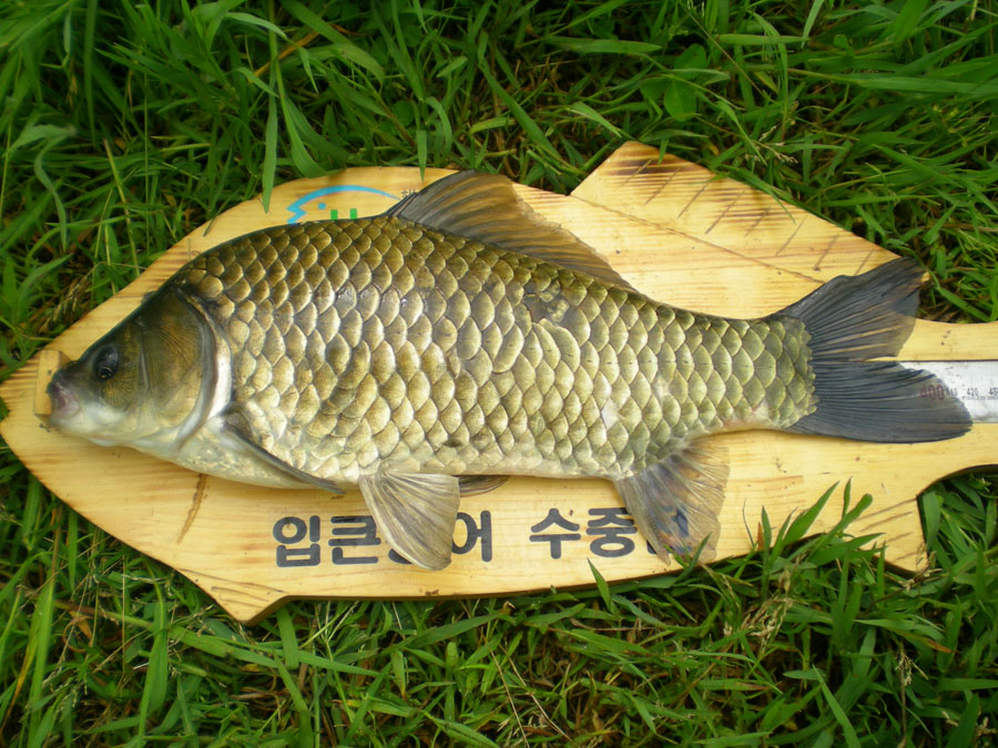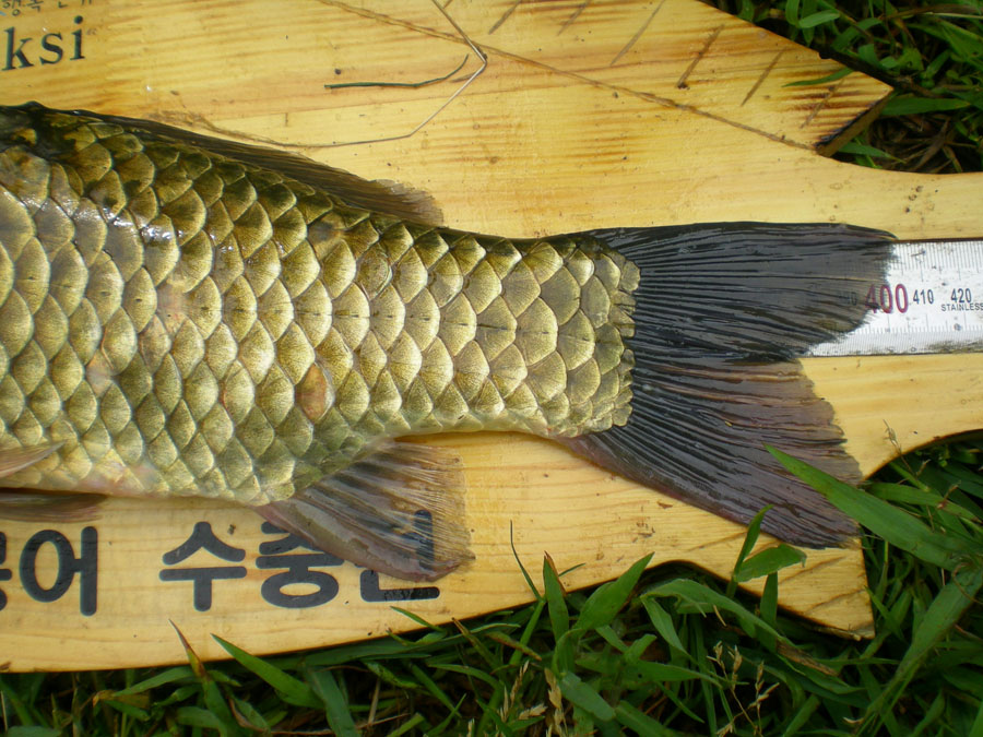 그 전화의 주인공 목소리 신문붕어님... 잔뜩 흥분된 목소리 "형님!~ 45cm가 넘을 것 같아요" 하며 계측자와 살림망을 가지고 오라는 것이다.