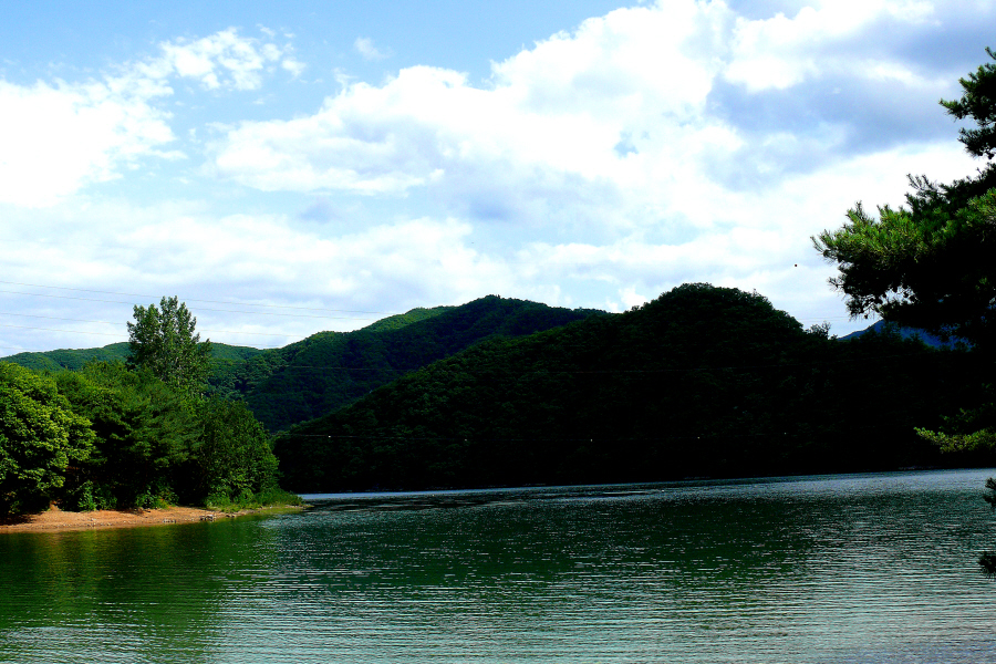 언제나 깨끗하고 아름다운 모습을 보여주는 춘천댐 고탄낚시터 전경입니다.
