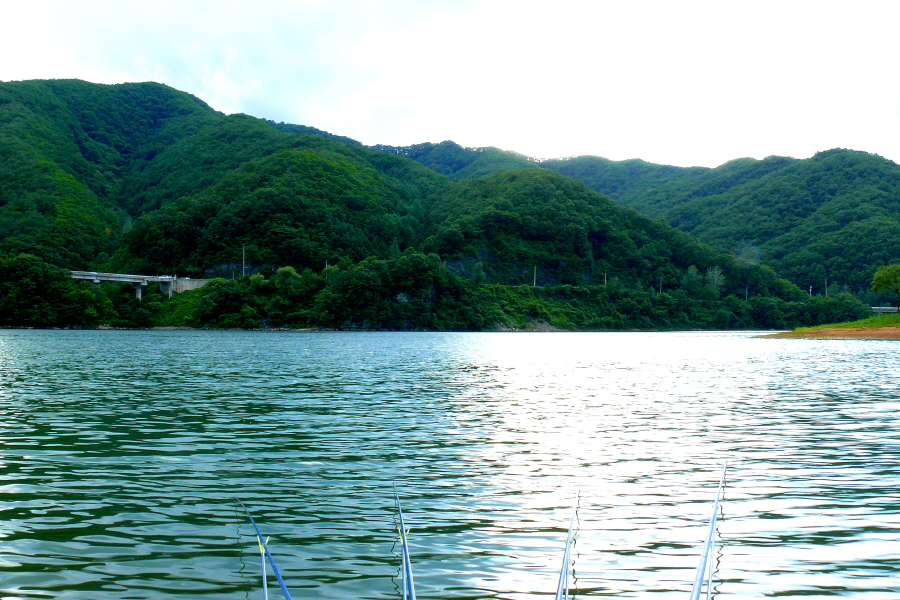 포인트의 이동으로 깊은 수심을 보여주는 의암댐 거북이낚시터 전경