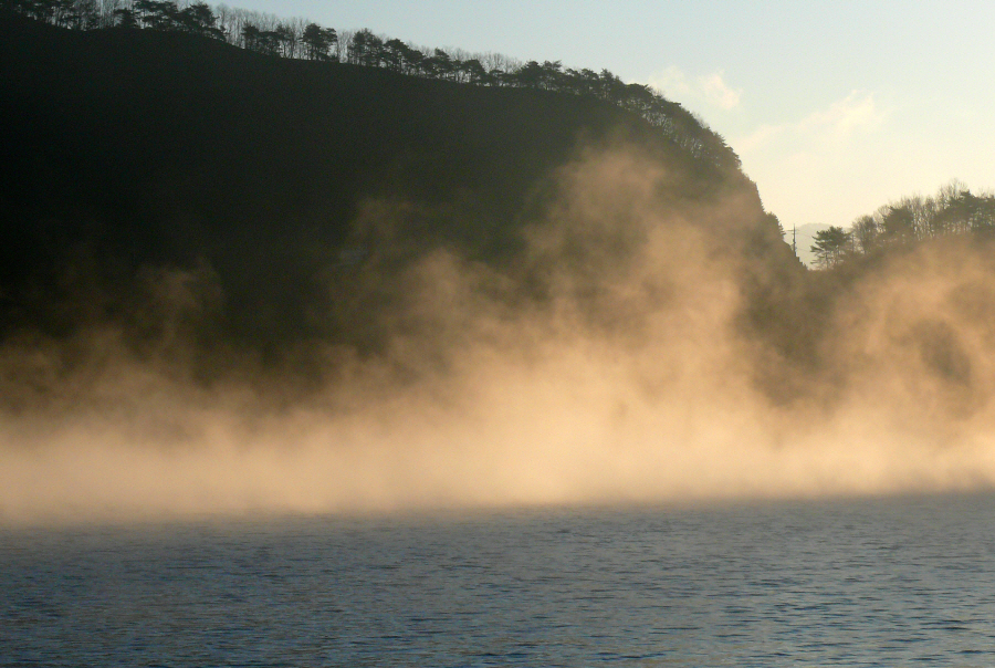 겨울을 실감나게 하는 물안개 입니다.