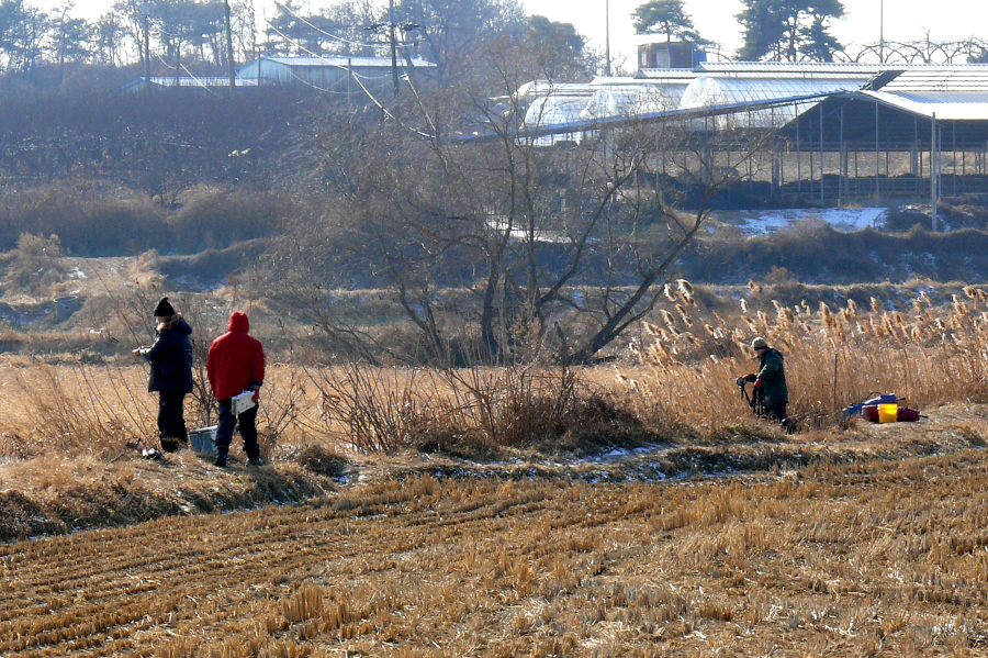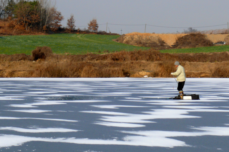 하지만 낚시하는 사람이 거의 없어서 붕어들이 활발하게 움직이는 것같지는 않아 보였으며 첫 구멍에서 입질이 없으면 또 다시 새로운 얼음구멍을 뚫는 것이 유리하다.
