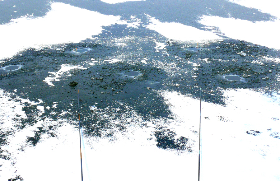 보촌지에 도착해 빙질을 살펴보니 두께는 6 - 7센티 정도 나왔으며 빙질은 단단한 상태다.