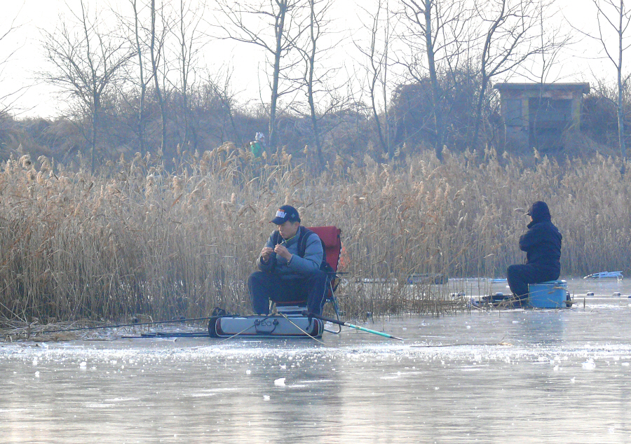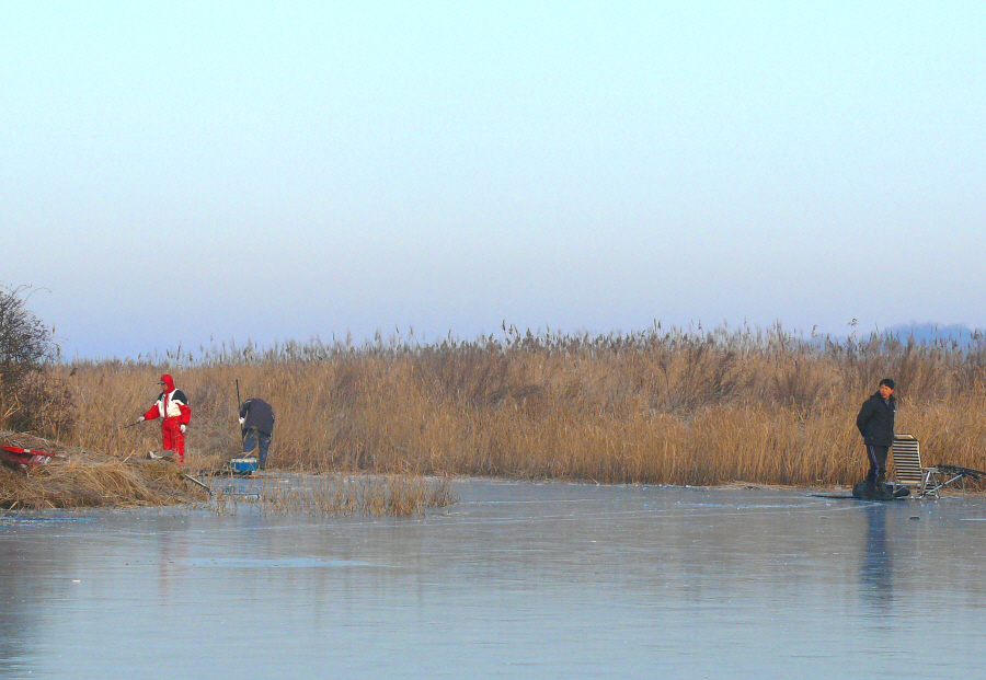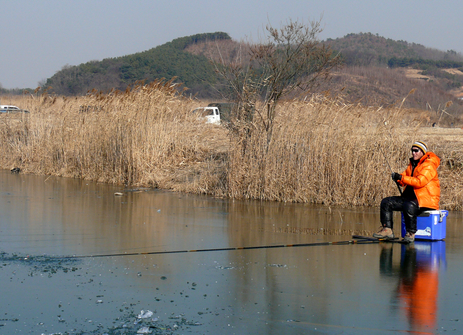 동이 터오면서 제법 많은 조사들이 막산수로의 얼음을 뚫기 시작했고 취재팀도 각자의 포인트에서 채비를 드리우며 입질을 기다렸다.