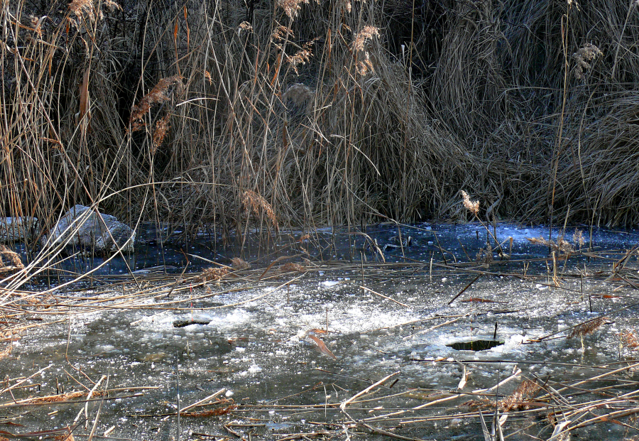 붕타령님은 갈대 수초 가까이에 구멍을 뚫어 봅니다.