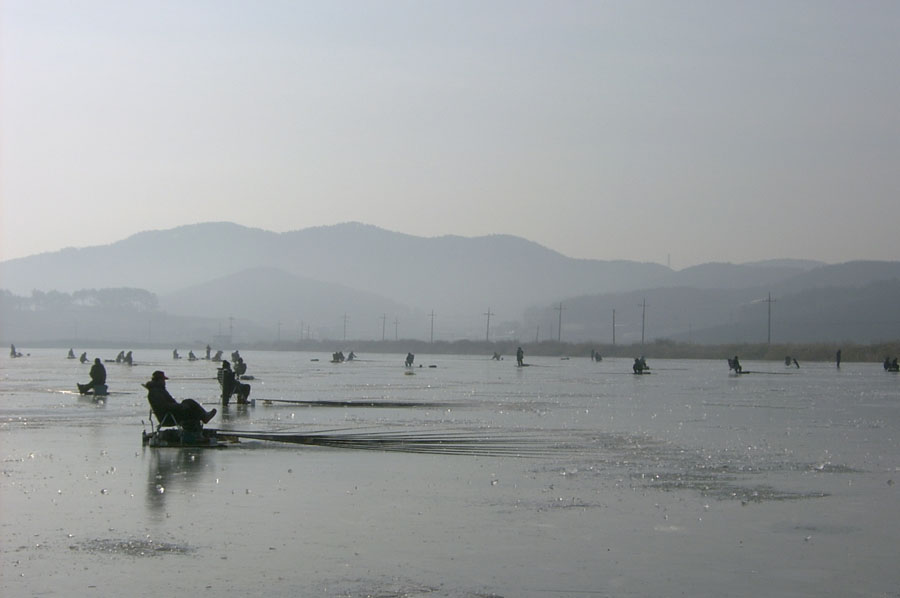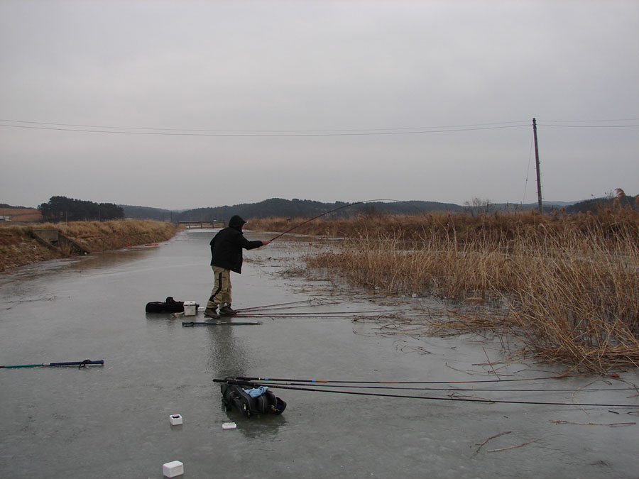 오랜만에 술나비님댁에서 하루밤 유숙을 하고나서 요즘 조황이 좋다는 도내수로에 도착을 하여 얼음 구멍을 뚫고 낚시를 하였다.