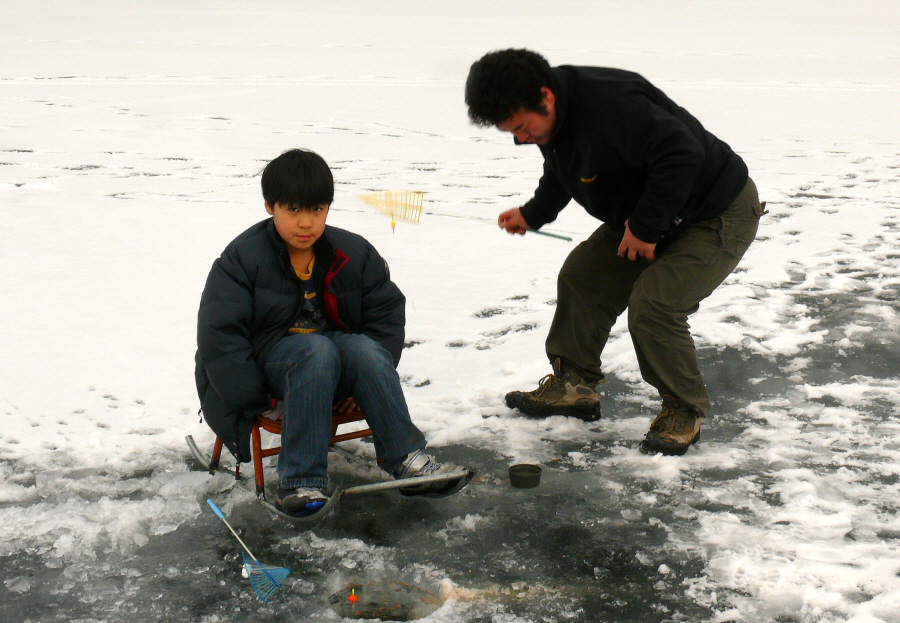 가족들은 모두 빙어낚시에 빠져 봅니다.