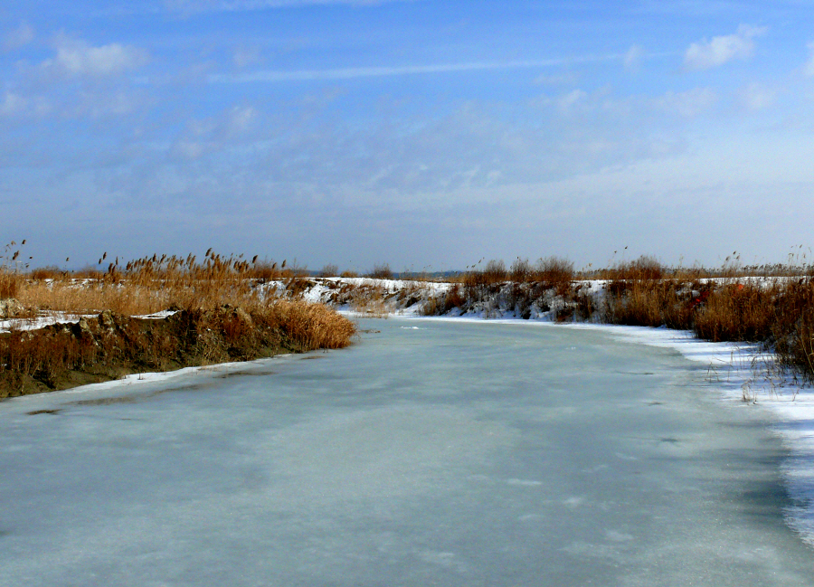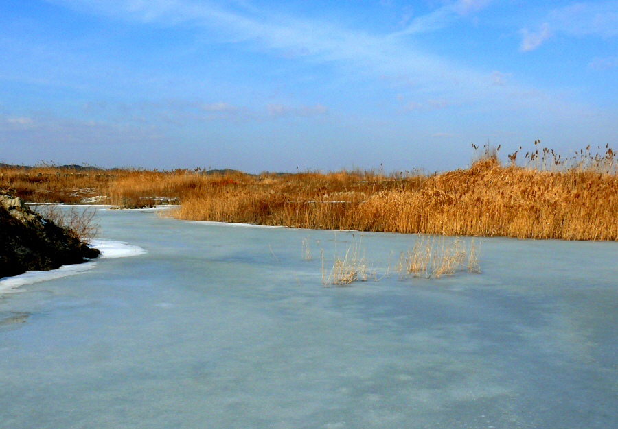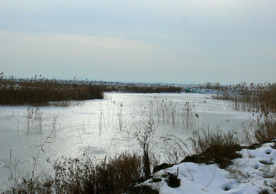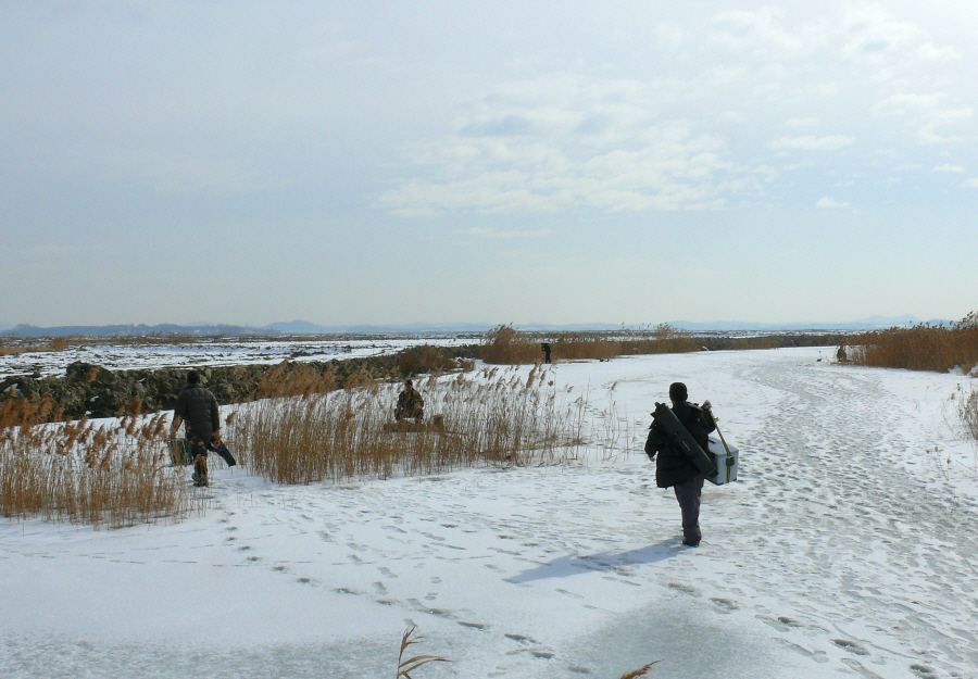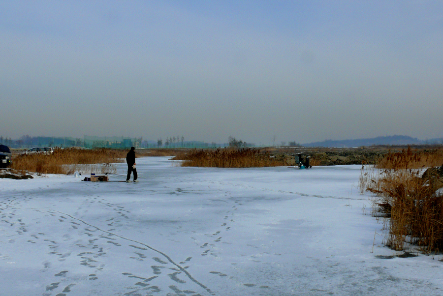 얼음낚시를 마무리 할 시기에 찾아간 화옹호 간척지의 수로들.
