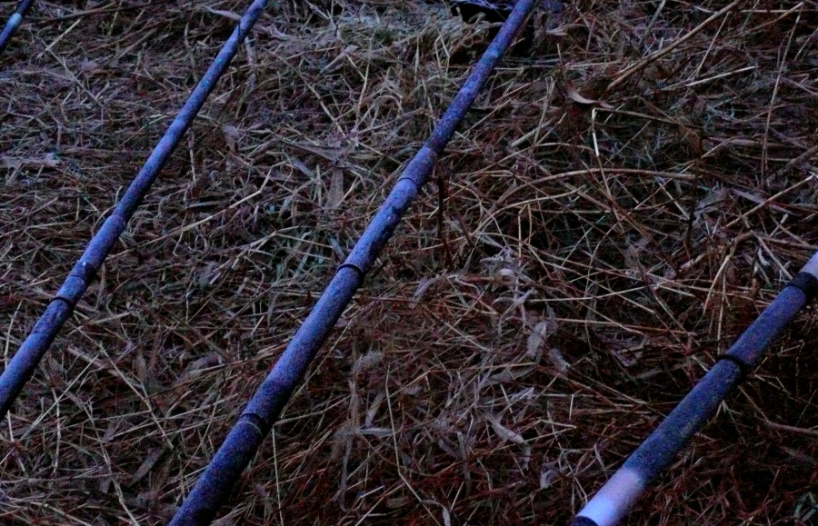 새벽에 낚시대가 얼었습니다.