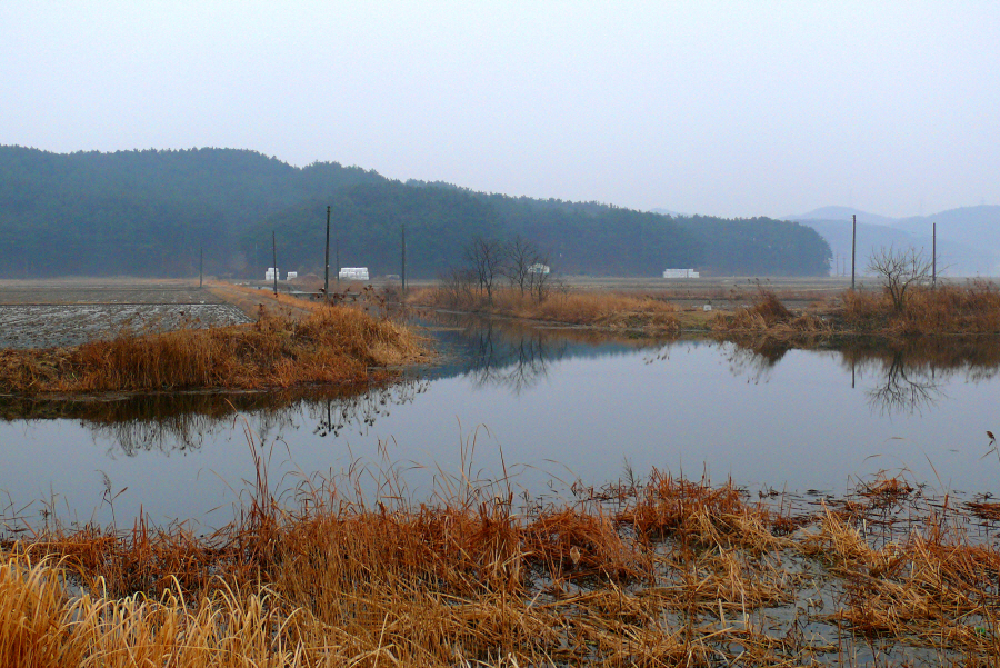날이 밝으면서 이원수로의 전경을 찍어 봅니다.