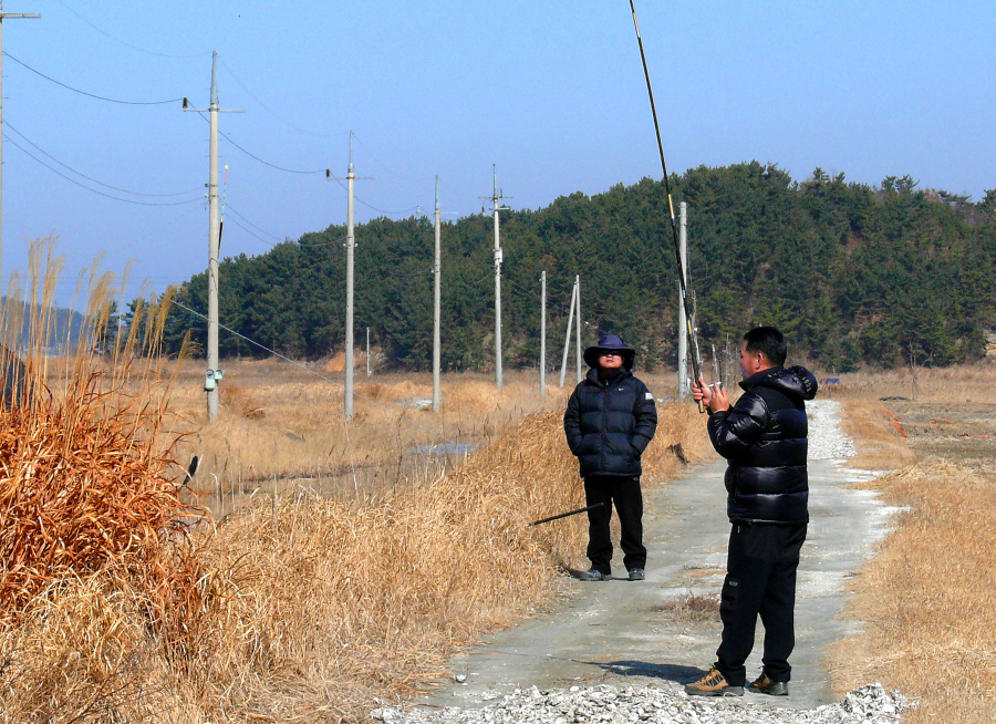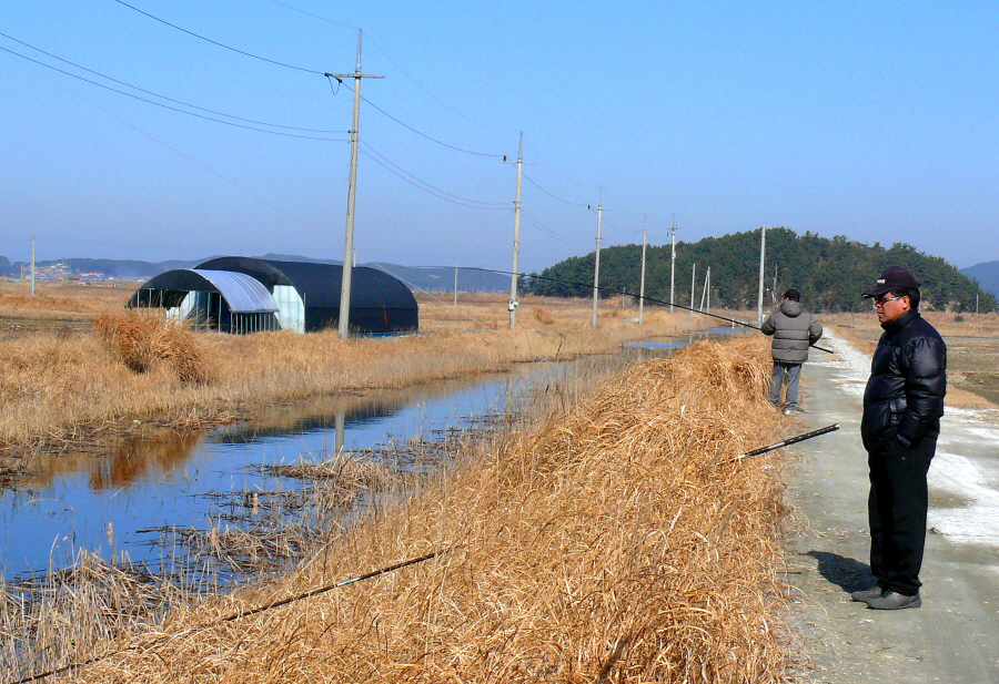 포근한 날씨 탓에 파도리권의 수로와 둠벙에는 몇몇 조사들이 햇빛을 즐기면서 수초낚시에 임하고 있었지만