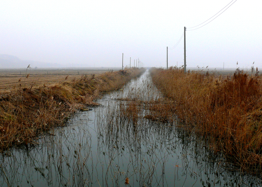 갈대수초가 잘 발달되어 있는 샛수로 입니다.