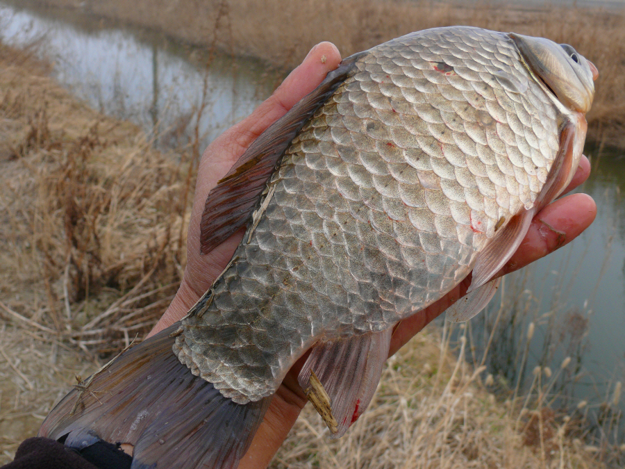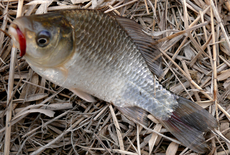 먹성 좋게 입질을 하는 샛수로 붕어의 자태입니다.