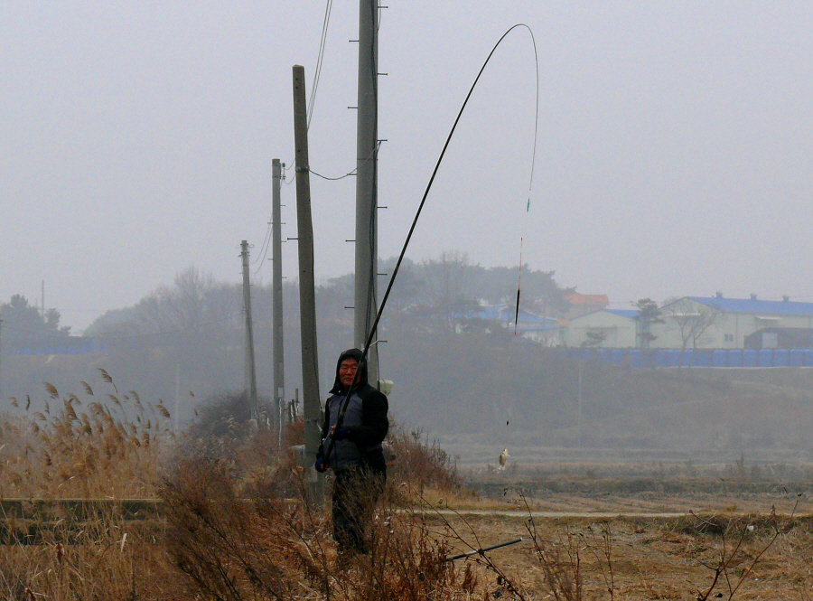 준척급을 걸어 낸 윤교수님의 낚시 모습