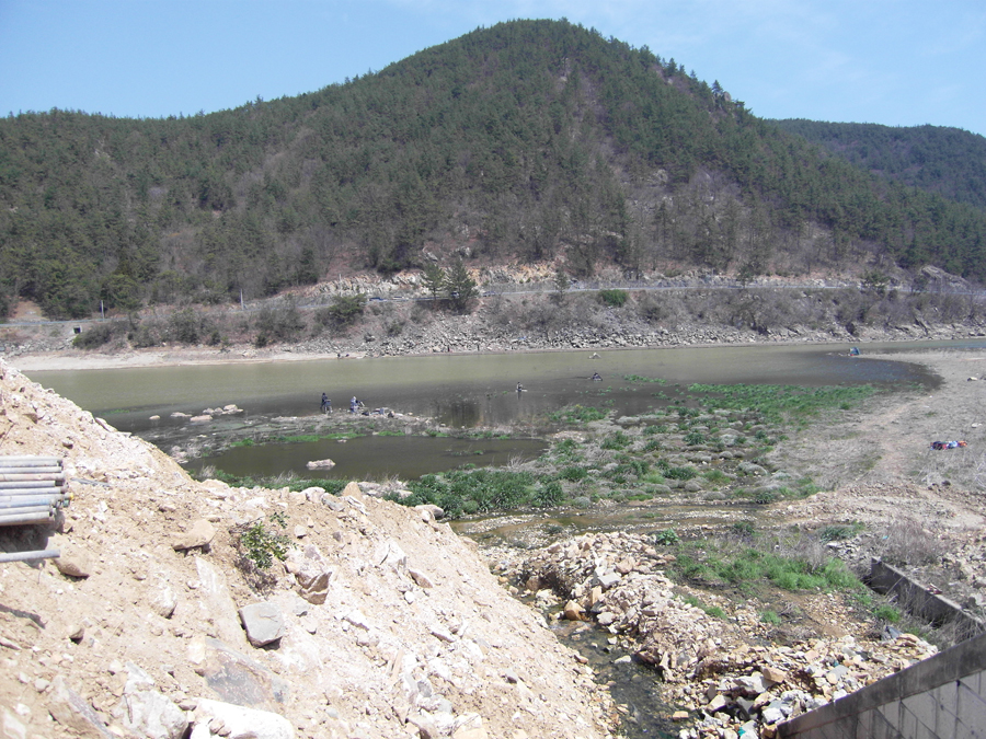 * 포인트: 상류 좌측편 육초대가 잠긴 곳 (정면에 바윗돌)