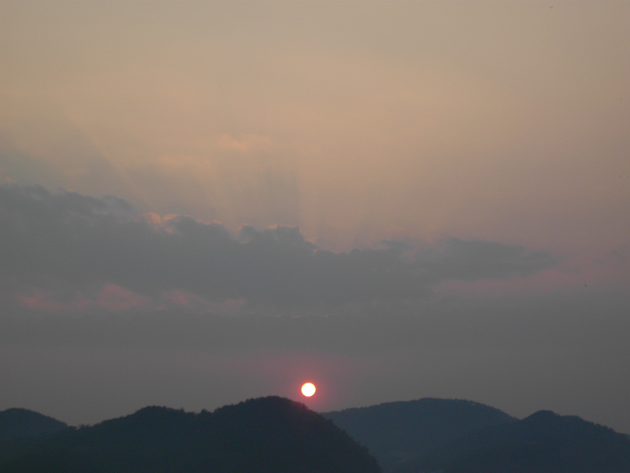 새벽에 한기를 느끼며 버티고 있는 사이 오른쪽 산위로 해가 떠오른다.