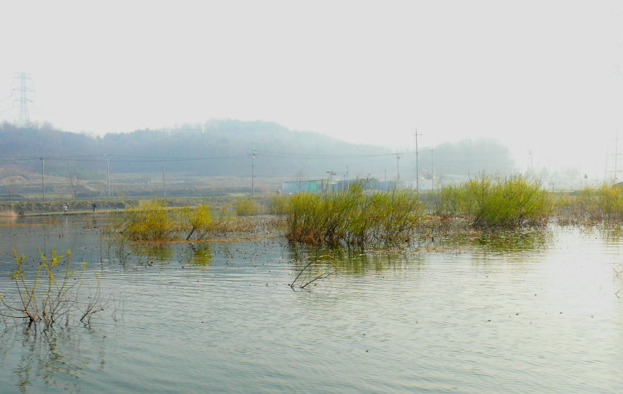 수몰나무와 수초가 잘 발달되어 있는 안골지입니다.