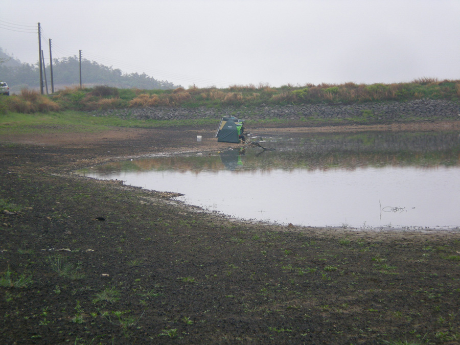 대바기님 자리를 이어받아 물이 약간 빠진 관계로 낚시자리를 정리하고 있습니다.