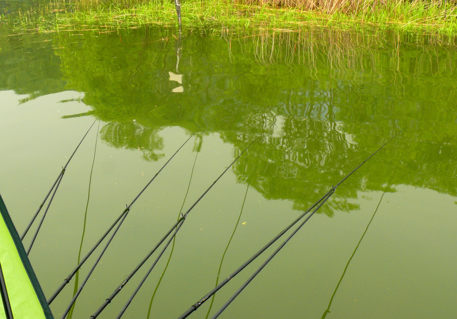 물속에 잠긴 육초대를 피해서 채비를 드리우고