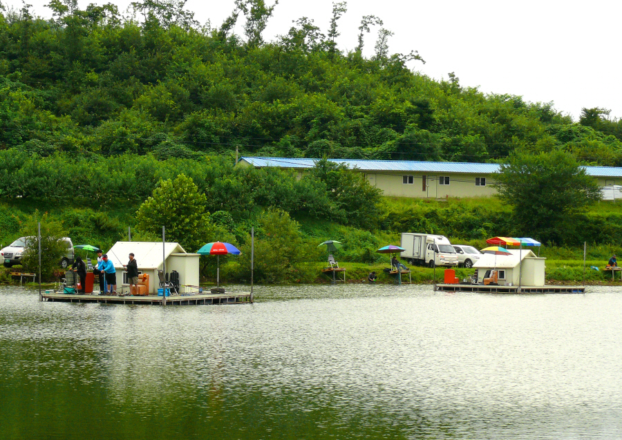 관리소 건너편 산쪽 포인트에 자리잡은 수상좌대입니다.