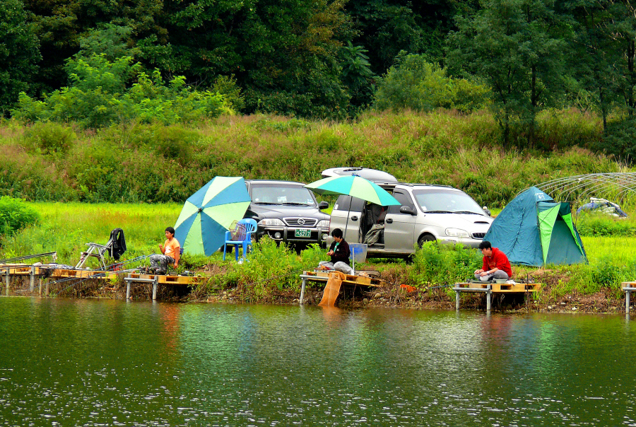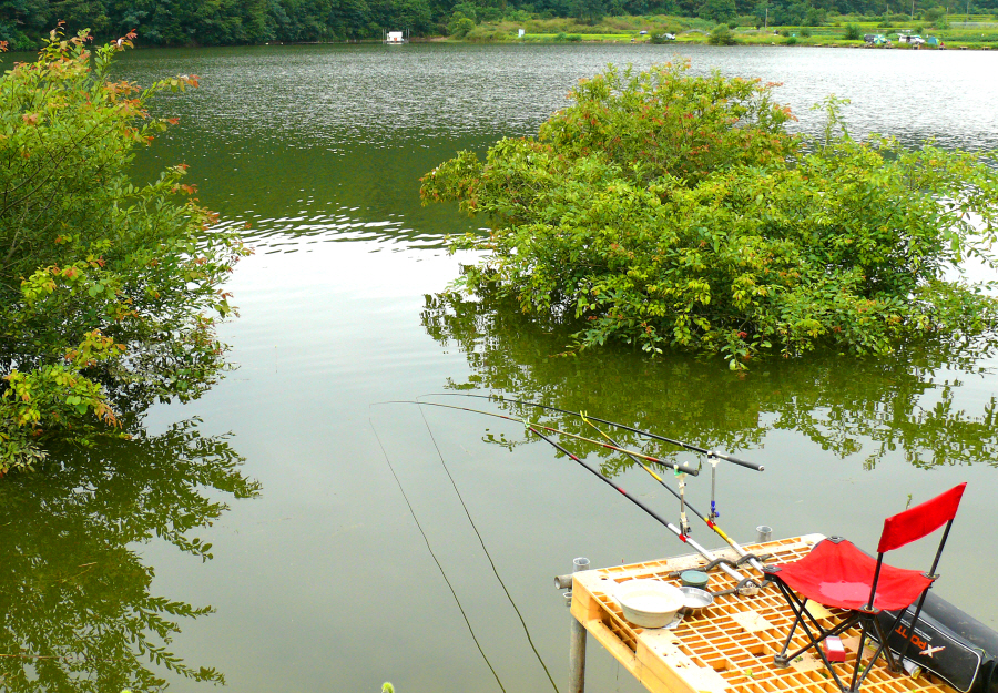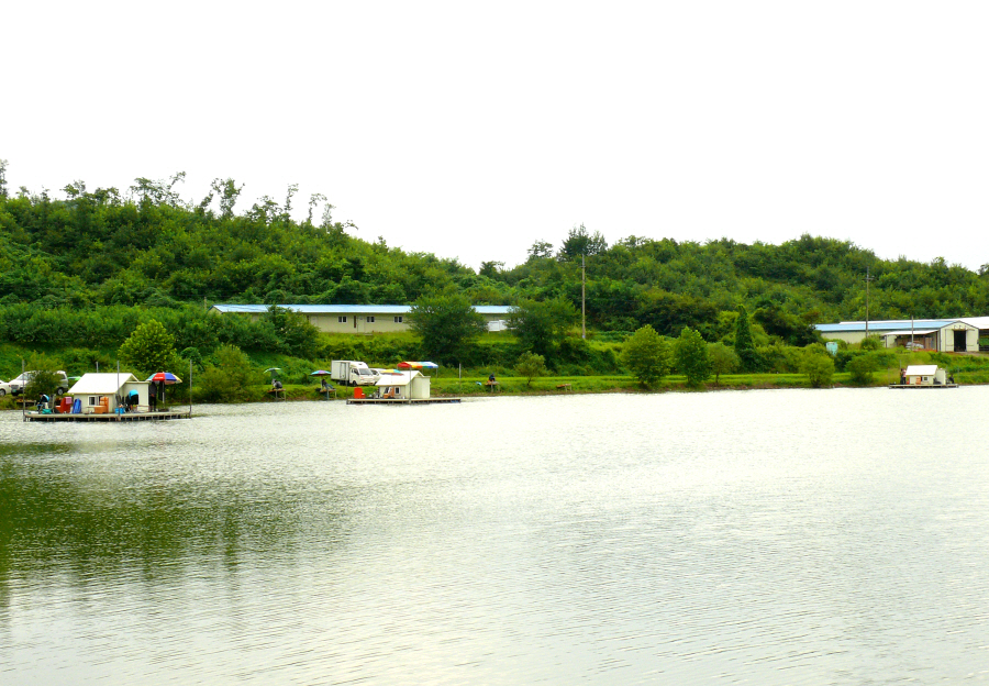 흐린 날씨에 도착한 노은지는 조용할 줄 알았는데 기대와는 달리 수상좌대도 만석이고 연안도 포인트마다 가족과 함께 온 조사들이 자리를 잡고 있었다.