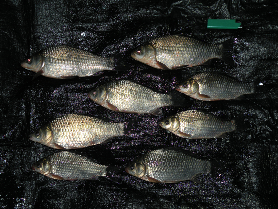 첫 입질은 11시 30분에 쑥우욱 빨려 들어가는 입질에 8치급 붕어 얼굴을 확인할 수 있었고, 이후 30 ~ 40분 간격으로 1마리씩 낚아 올렸습니다.