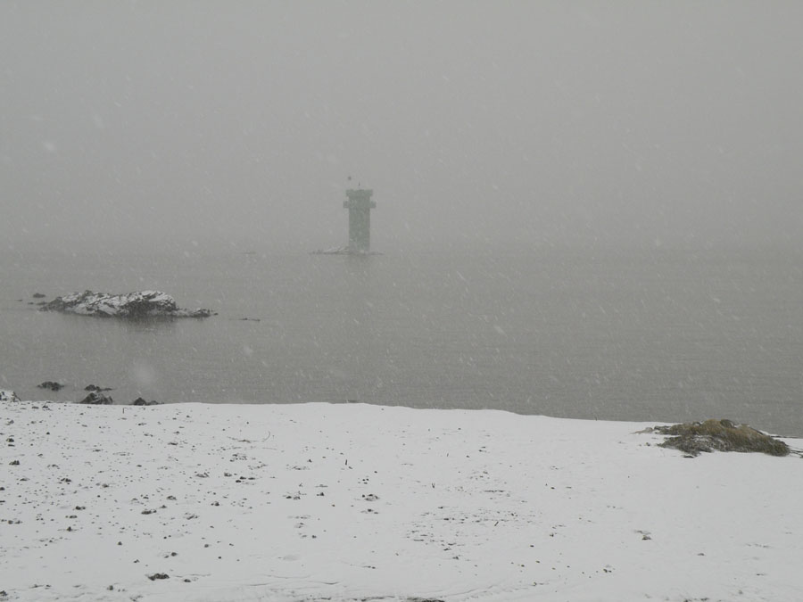 초지대교 위 눈내리는 등대가 외로워 보이네요.