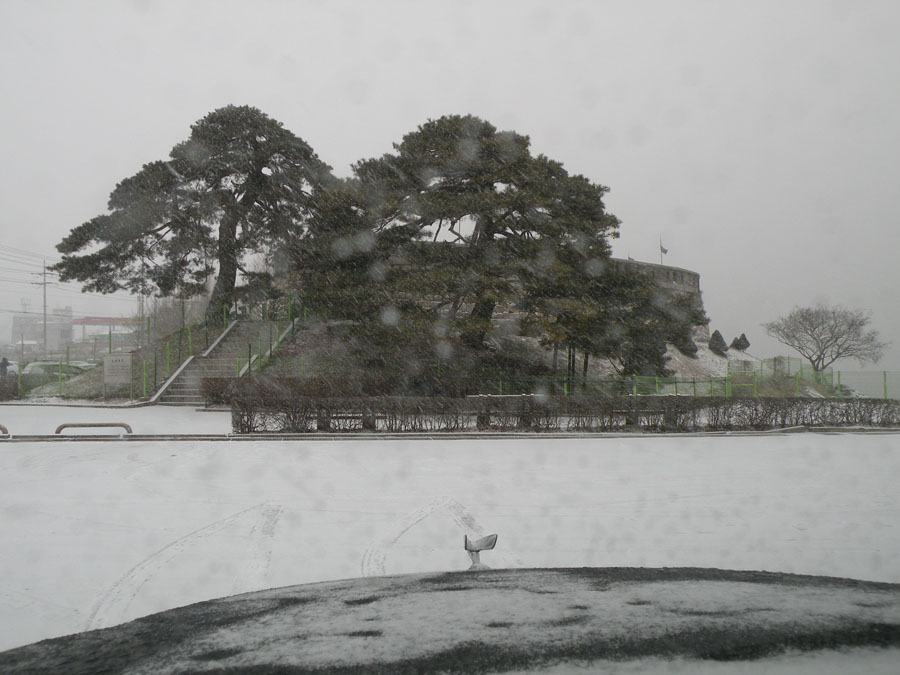 30분만에 눈이 길을 하얗게 덮었습니다.