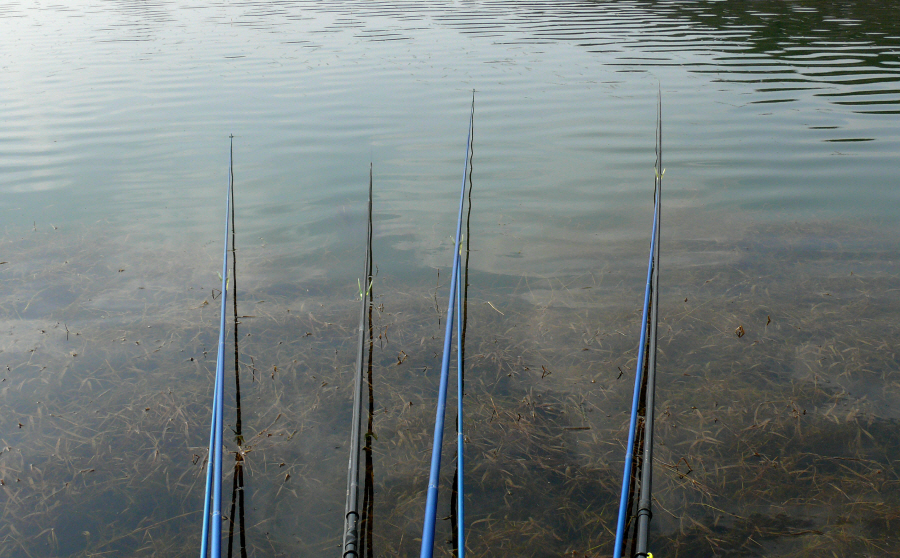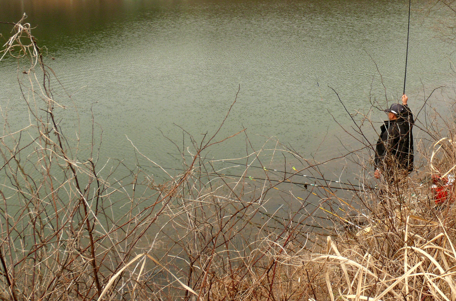 조용한 소류지의 중류권에 슬림찌 채비로 4대 편성하고, 입질을 기다리는데 먼저 낚시를 시작한 윤교수님은