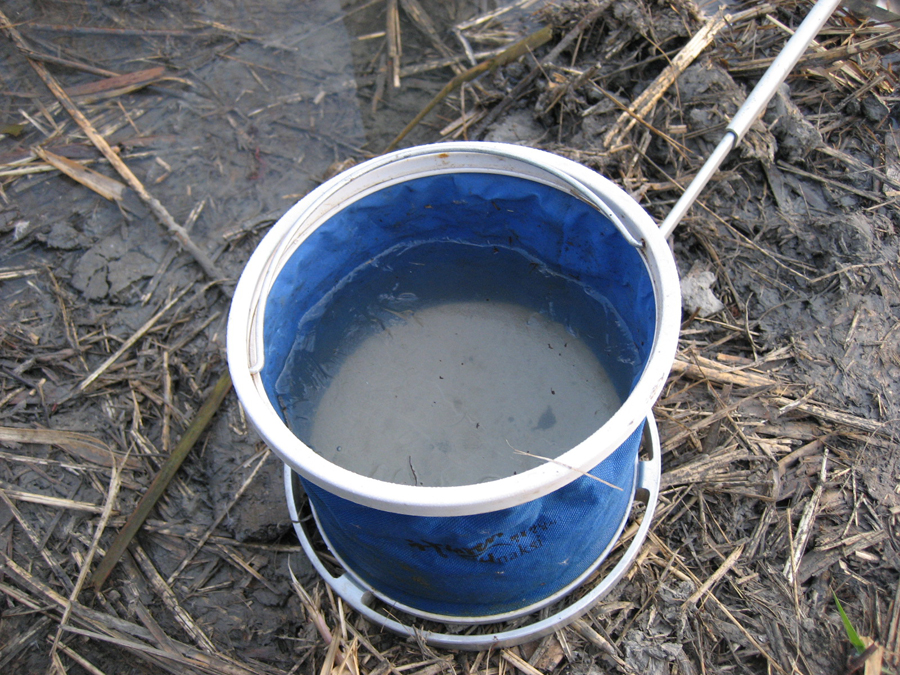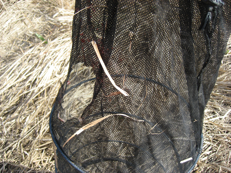 구멍난 살림망??... 아침에 찾다보니 수달이 멀리 들고가서 불쌍한 붕어만.ㅜㅜ