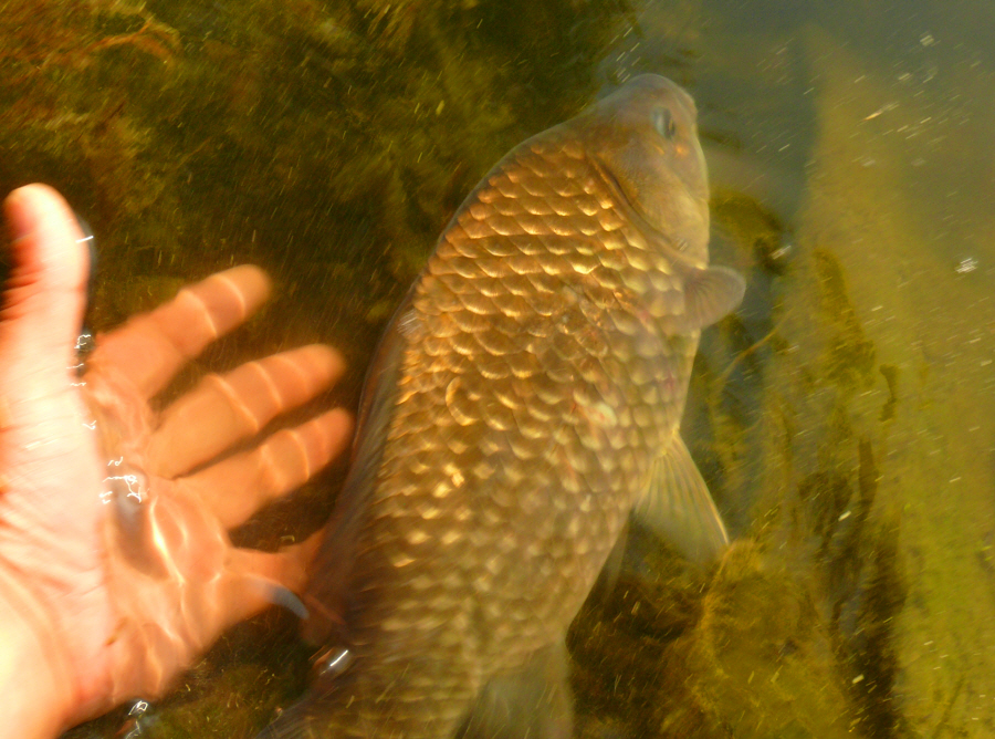 슬림찌 채비에 걸려 나온 붕어입니다.