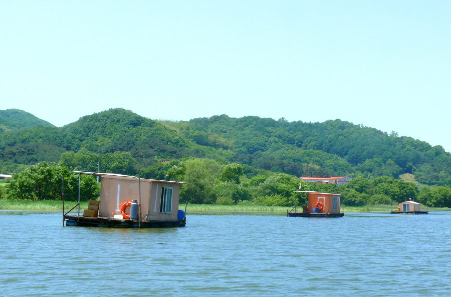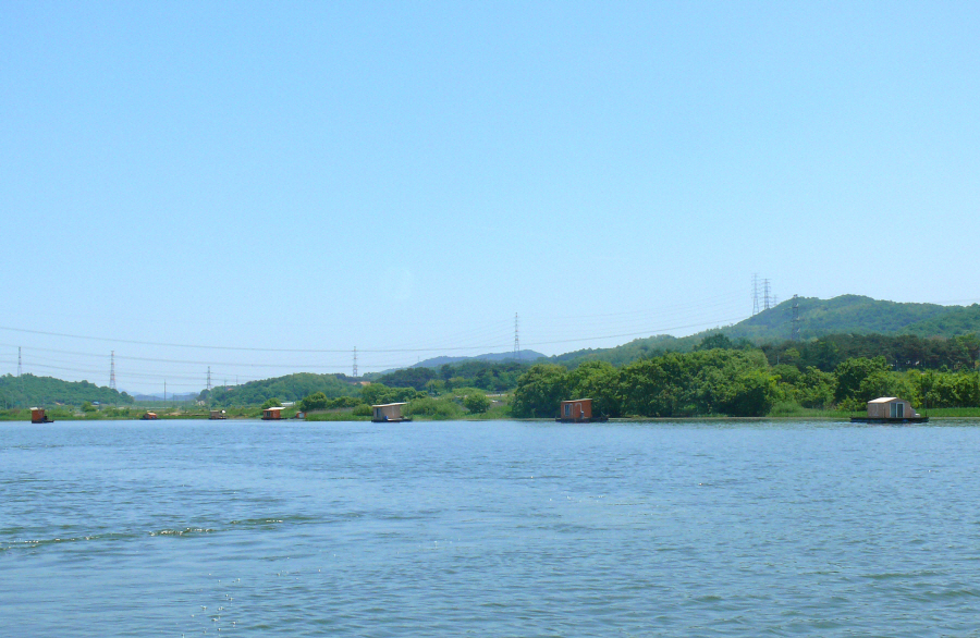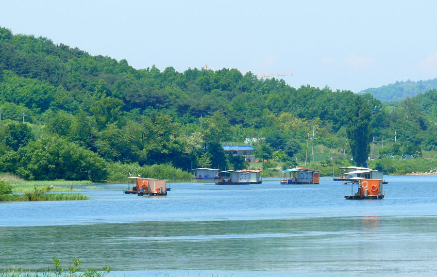 중하류권에는 새로 지은 좌대들이 자리를 잡았습니다.