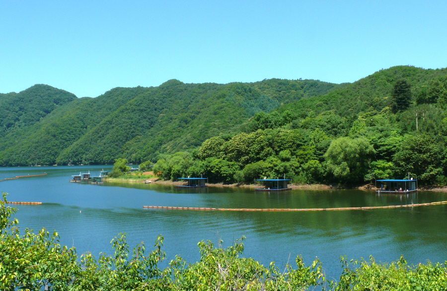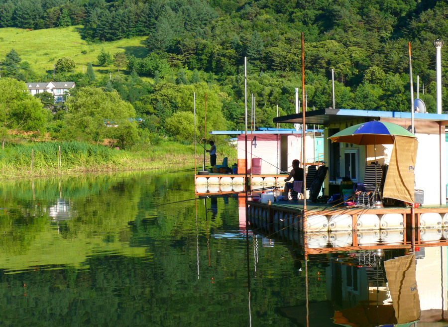 하절기 포인트로 좌대가 이동 배치된 고탄낚시터 전경