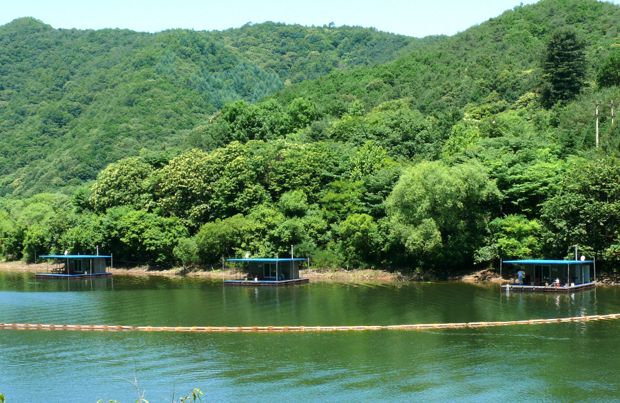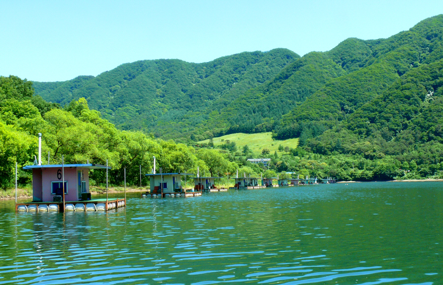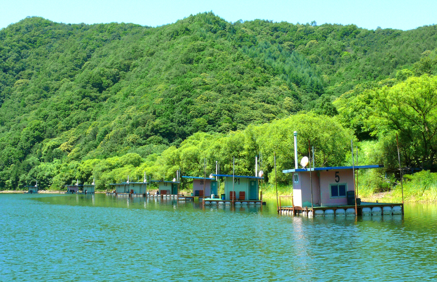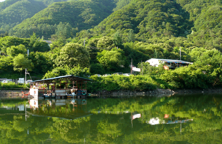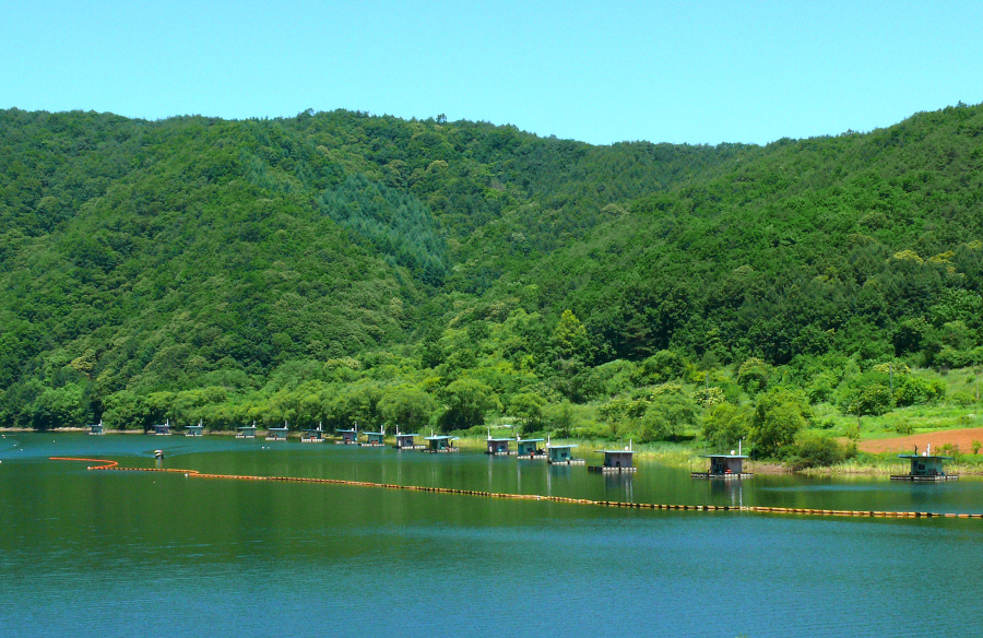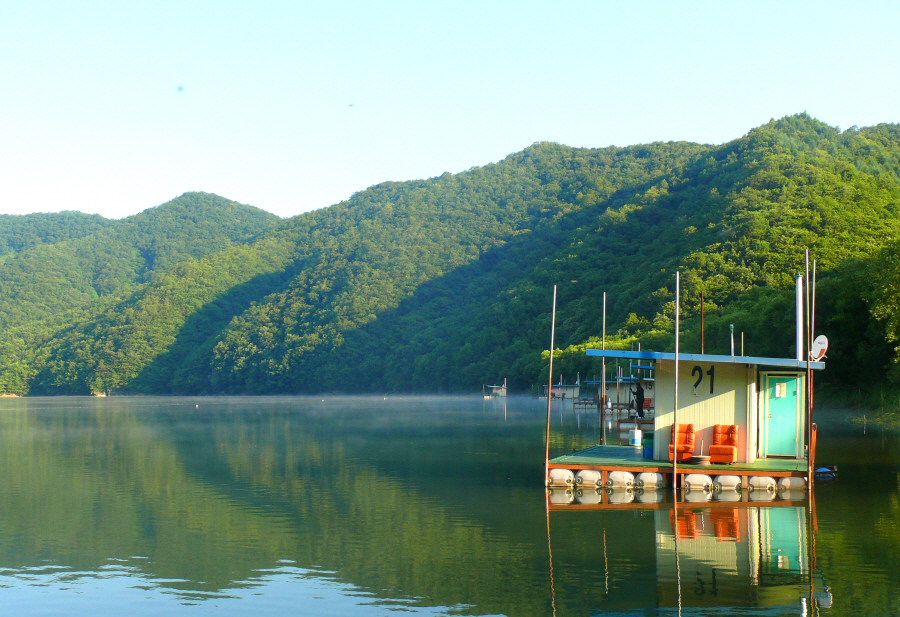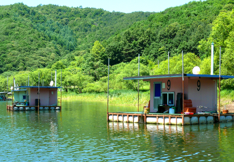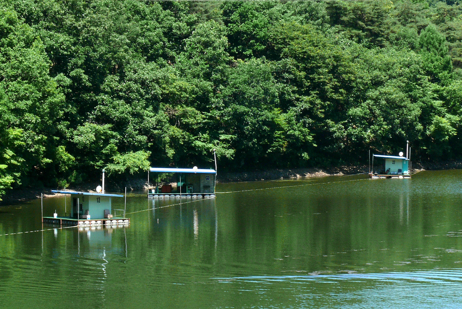 춘천댐 고탄낚시터의 경우도 춘천댐의 하절기 수위에 맞추어서 좌대들을 이동 배치시켜 놓았다.