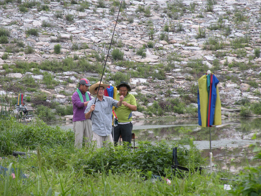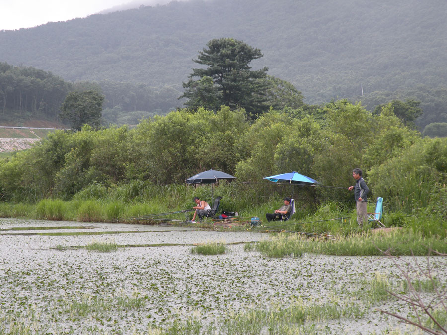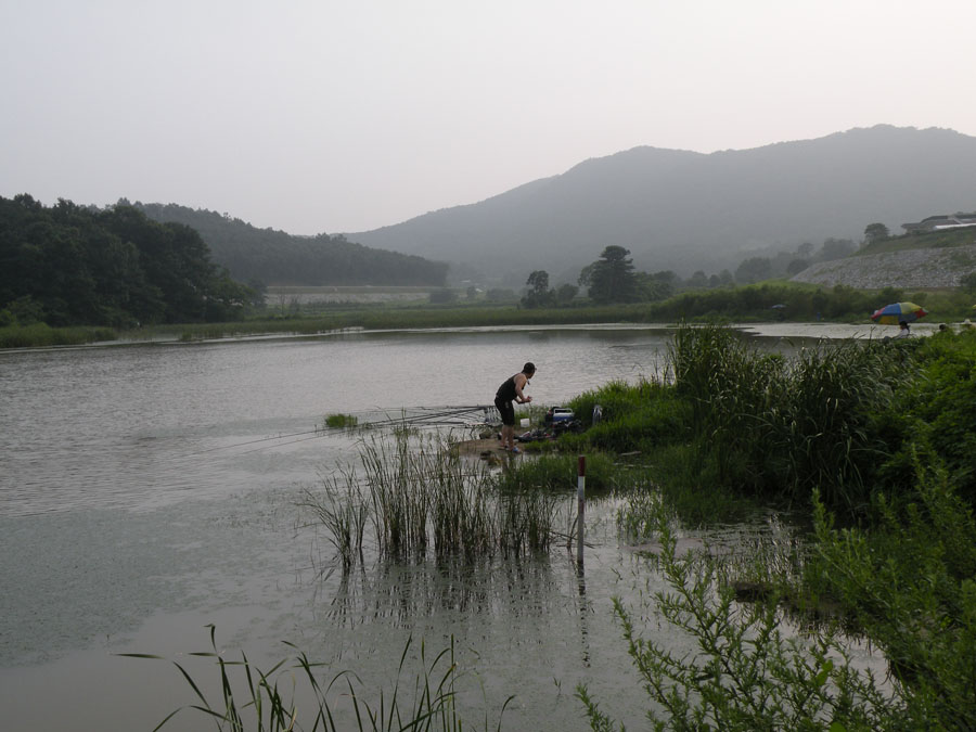 소류지에 도착하니 철호님은 포인트에 채비 중이고, 신문붕어님과 함께온 전부장과 상원이는 점심을 먹고 채비를 마치고 낮잠을 자고 있다.