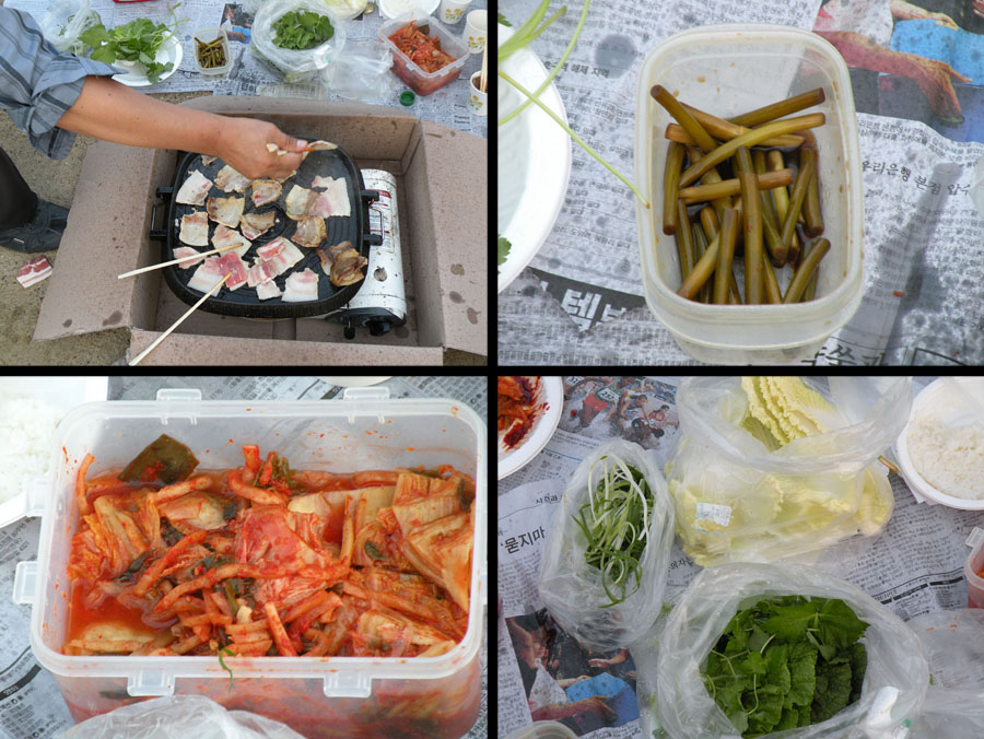 철호님 포인트를 둘러보고 베이스 켐프로 돌아와 돼지 고기를 굽고, 야채 쌈을 씻고, 햇반을 끊이며 필자는 저녁을 준비한다.