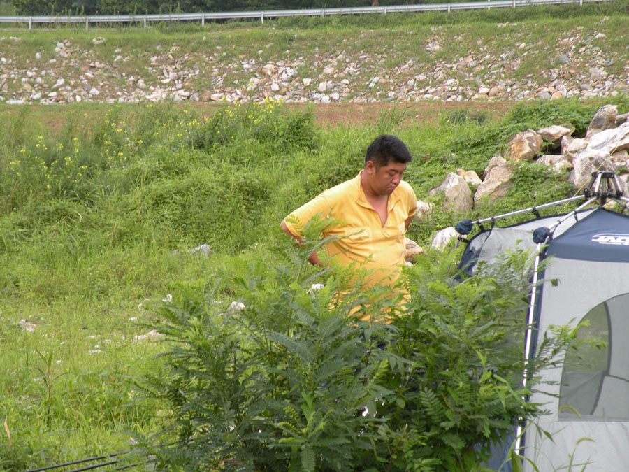 아침에 날이 밝은 뒤 7시에 일어나 미끼를 달아 포인트에 투척하니 5치급 붕어가 입질을 하여 낚여 나온다.