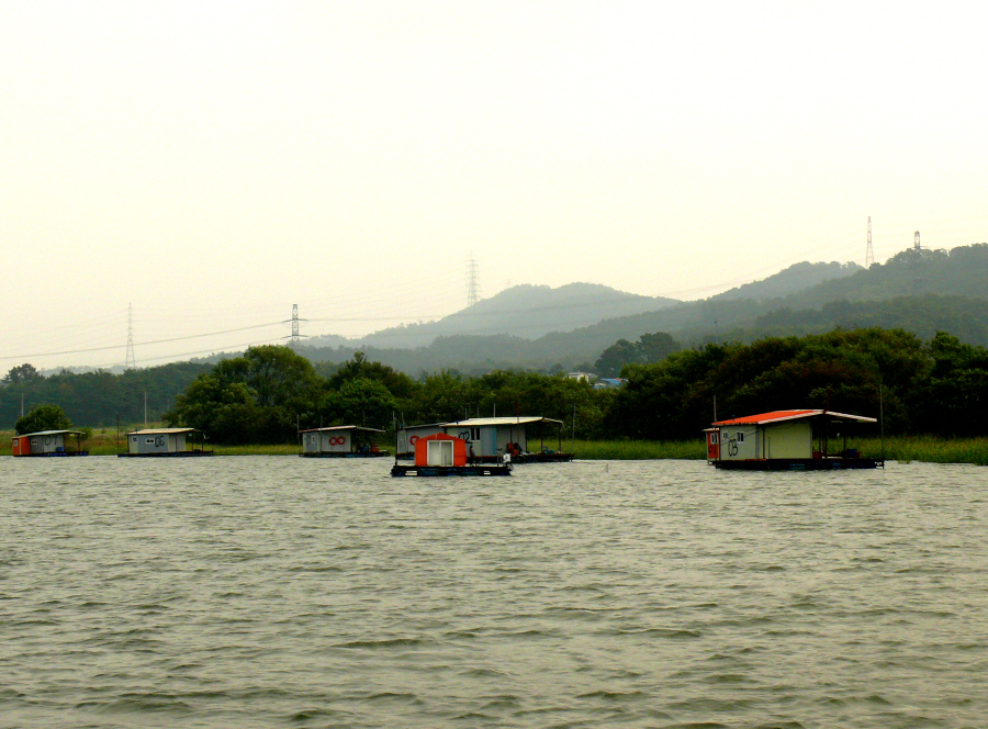상류권 구형좌대들도 수초대로 배치되어 있습니다.