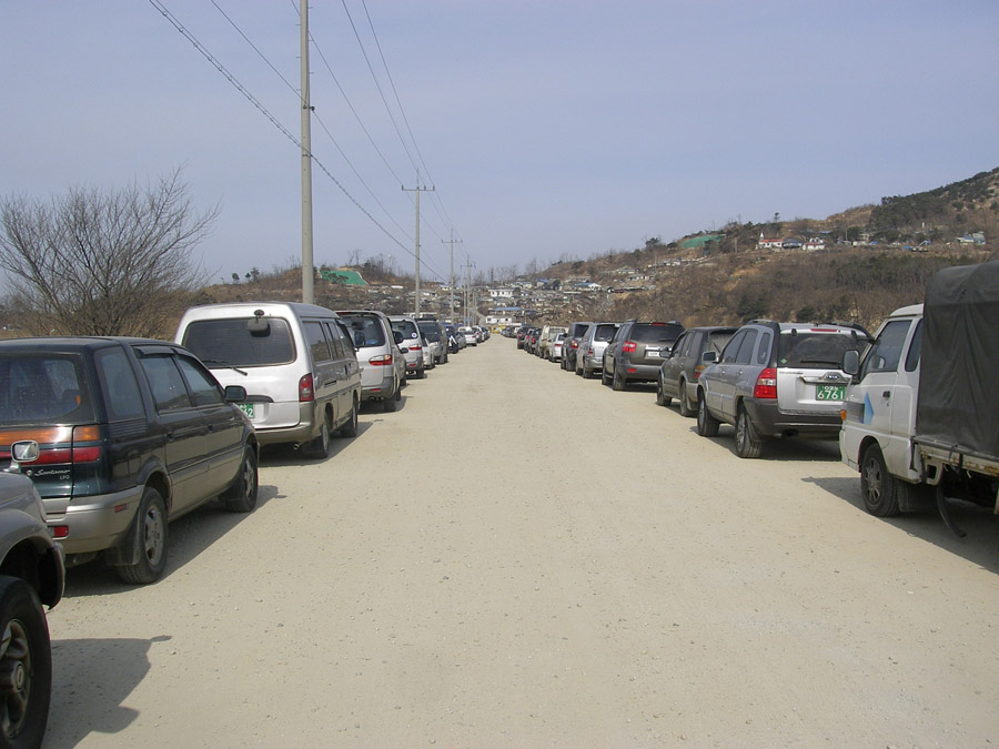 아침 8시경 도착을 하니... 허걱! 도로가 주차장입니다.