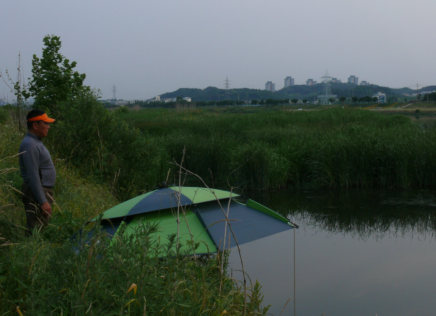 분위기는 최상인데 밤이 되면서 시작된 대물잉어들의 산란과 동틀 무렵에 흙을 쏟아 붇는 대형덤프 트럭의 소음으로