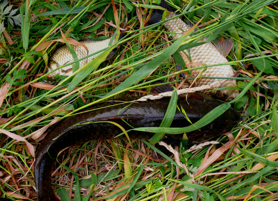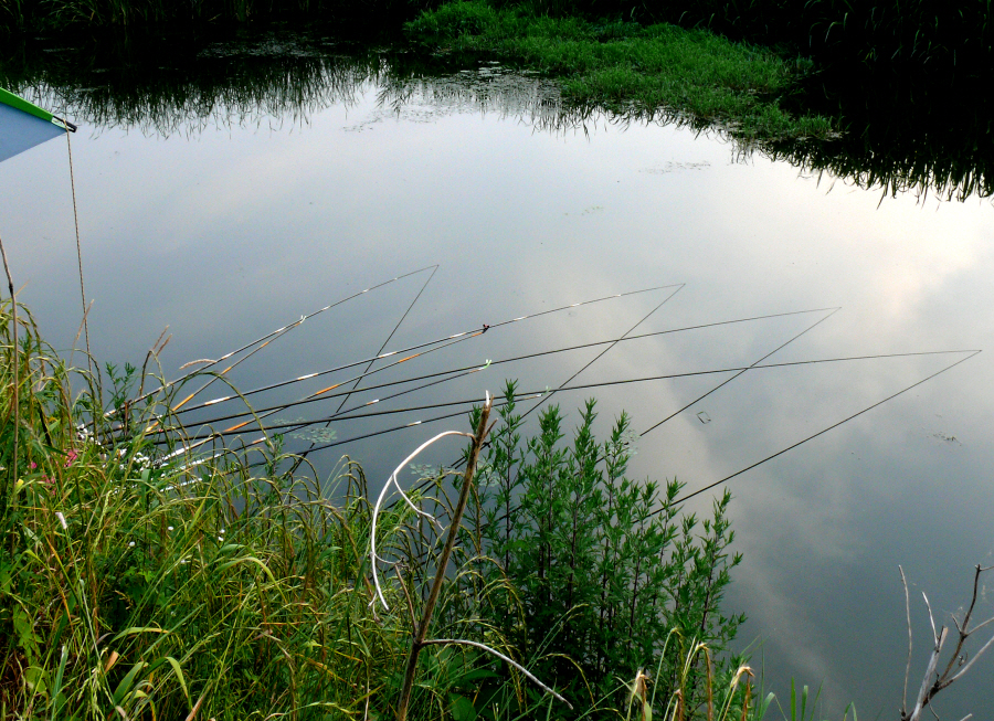 밤새 부들 수초에서 잉어들 산란이 이어졌습니다.