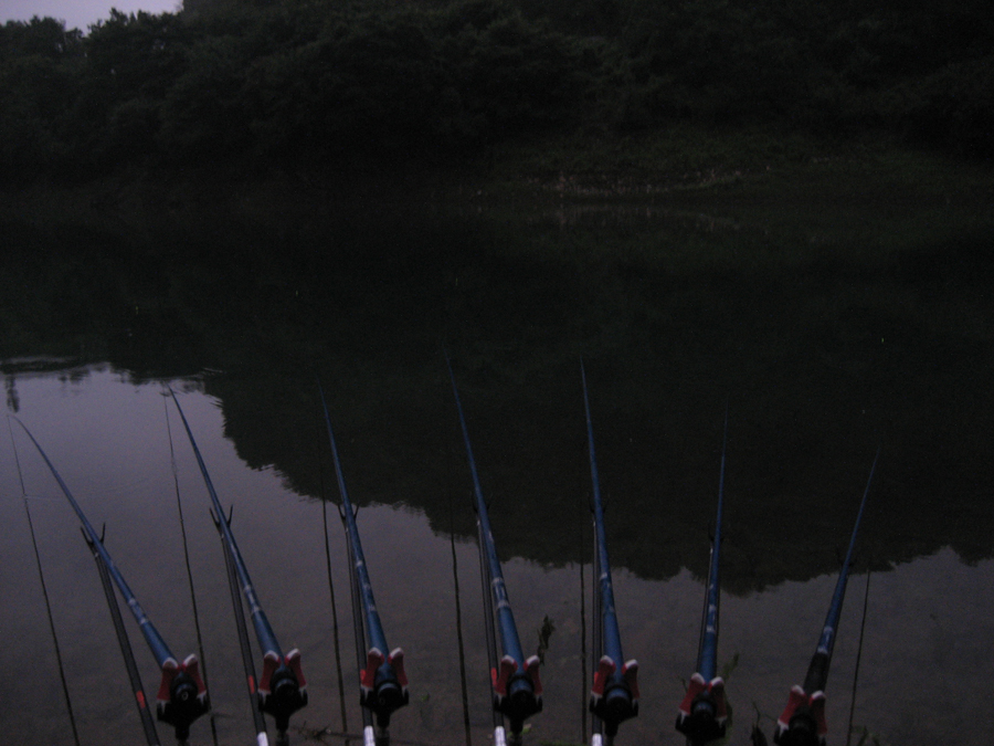 밤에 지렁이 짝밥에 잔챙급 붕어 4수를 하고 아침을 맞이하는데