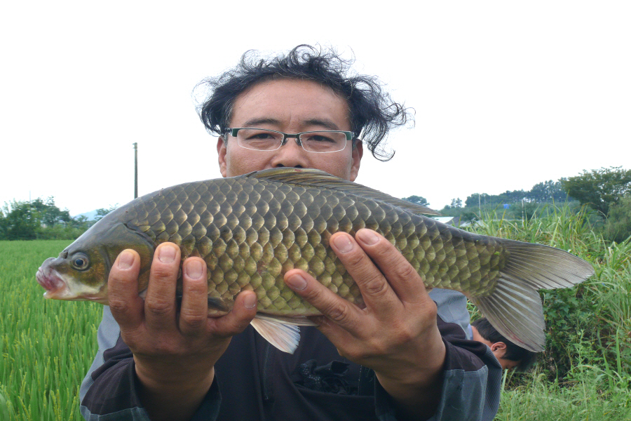 마침 전날 낚시를 한 조사가 한 사람이 있는데 살림망을 담그어 놓았기에 살림망 속을 살펴보니 모두 눈이 휘둥구레 집니다.