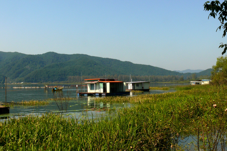 관리소 우측 연안 수초대에도 좌대들이 잘 배치되어 있습니다.