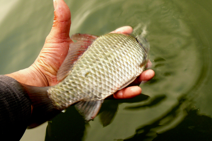 가을의 토실토실한 토종붕어들이 자갈섬의 잘 분포되어 있는 수초대로 몰려 들고 있고,