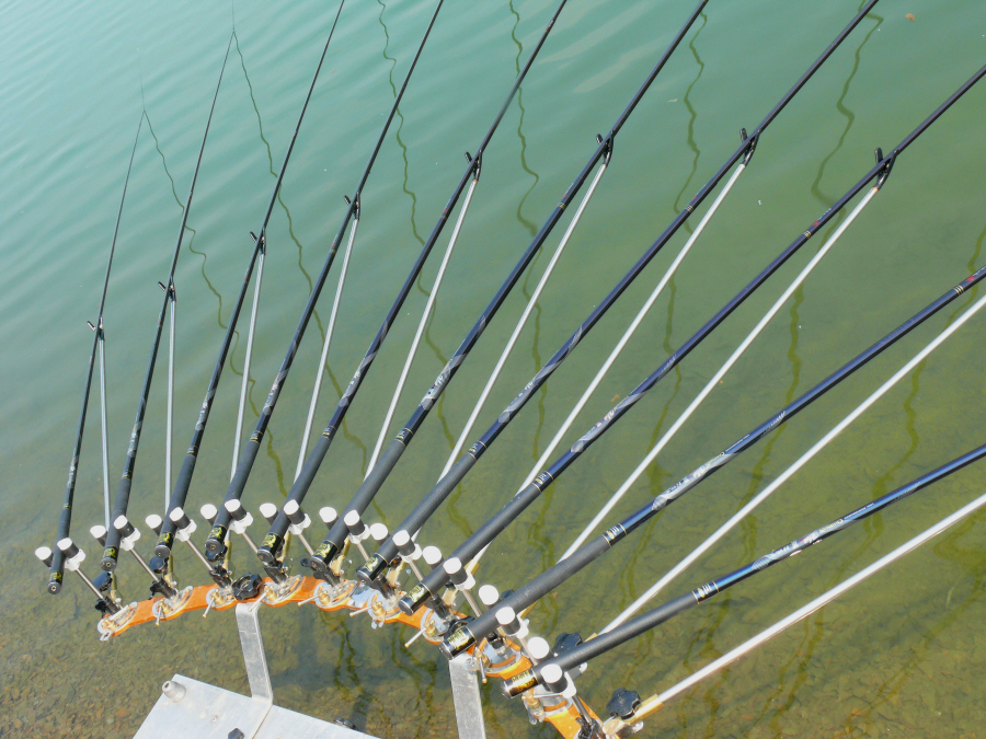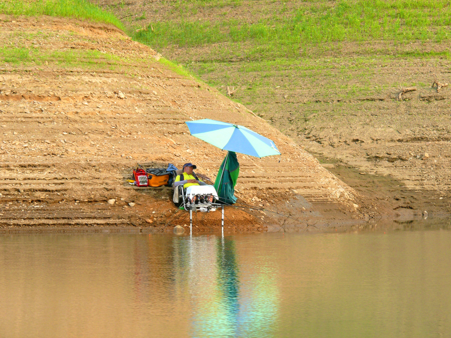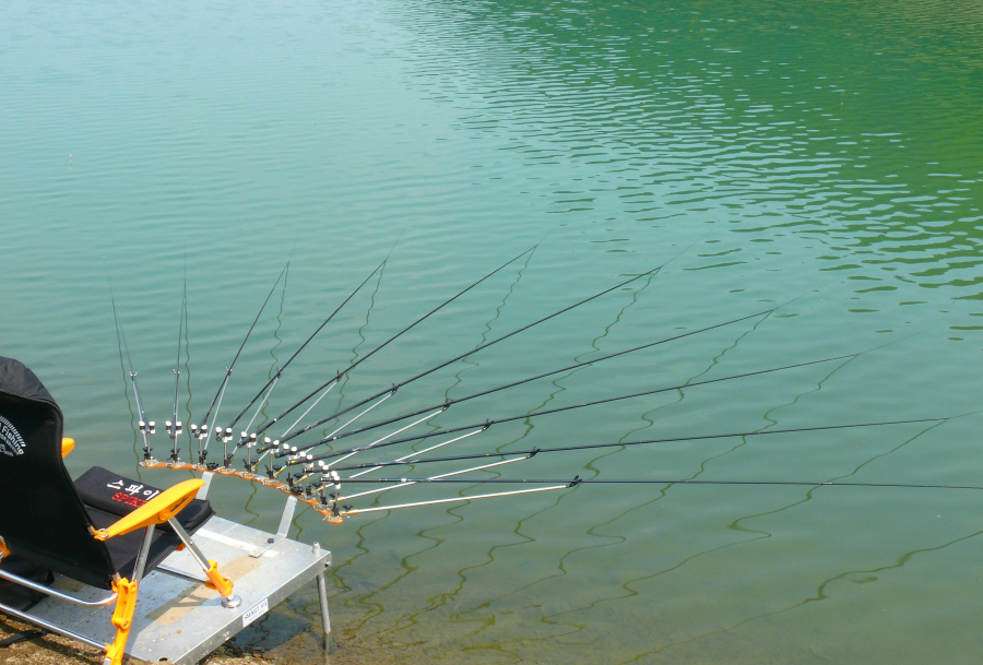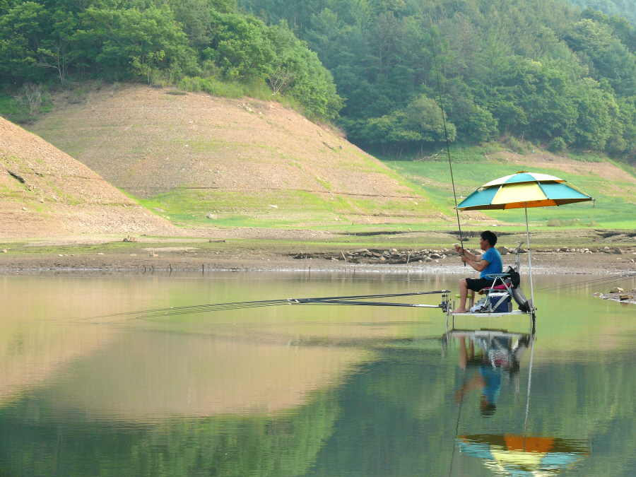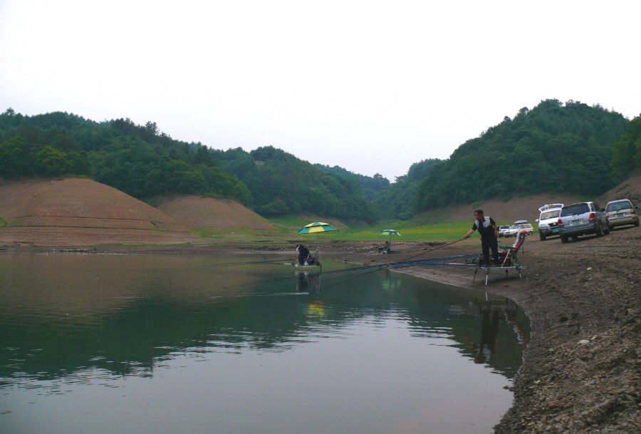 수심 1.5 - 2미터권에 새우낚시를 위해서 10대를 편성하고, 낮시간은 그늘막에서 휴식을 취하면서