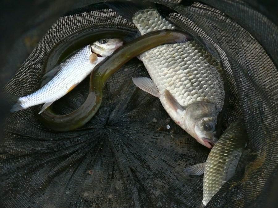 전날 새우낚시에 나온 붕어와 장어입니다.