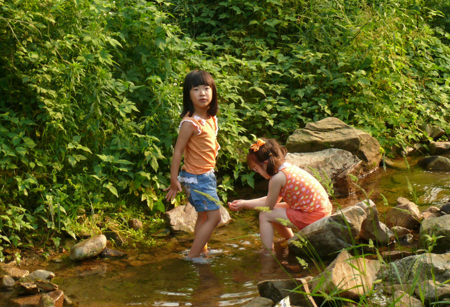 아이들은 필자가 물놀이를 도와주었습니다.