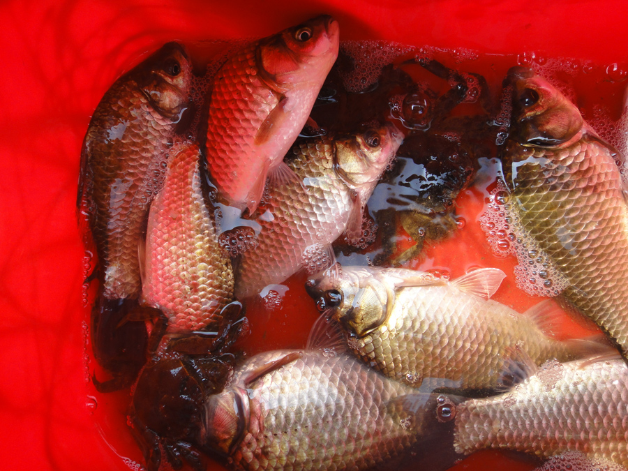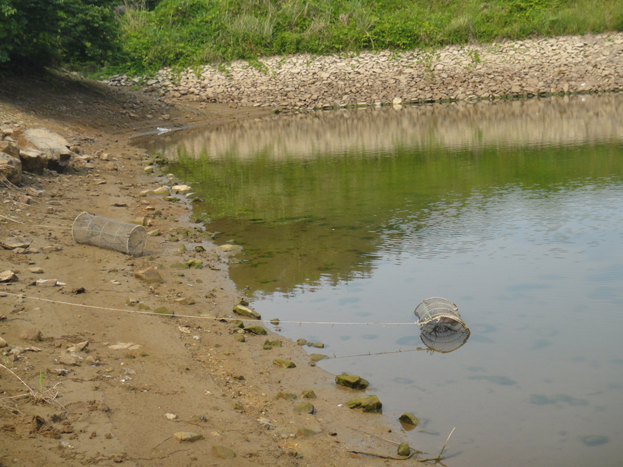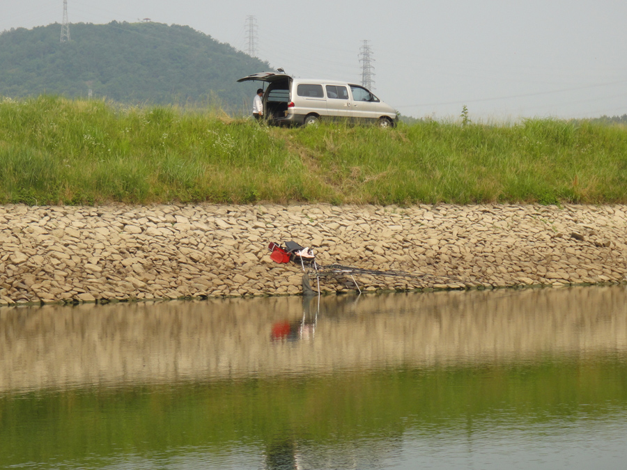 새벽에 일어난 제수씨가 필자의 낚싯대로 모래무지와 쉬리를 낚습니다.